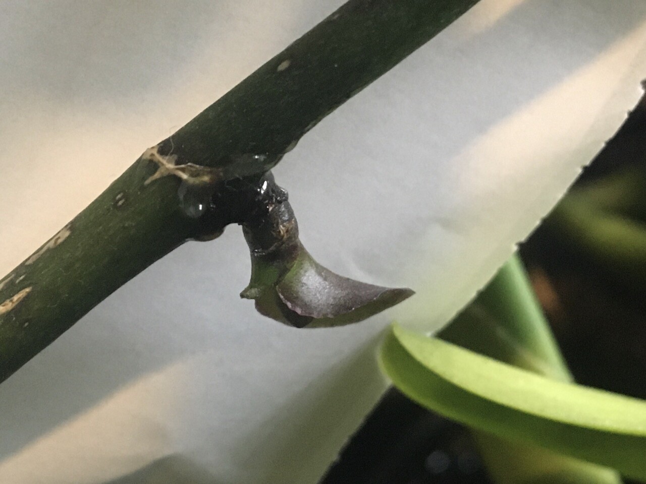 can't believe that magic plant hormones ("keiki paste") are really converting a flower bud into baby leaves 🥹 im so excited to (hopefully) duplicate my phalaenopsis orchids finally!!